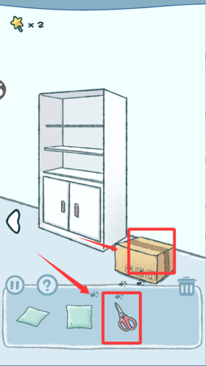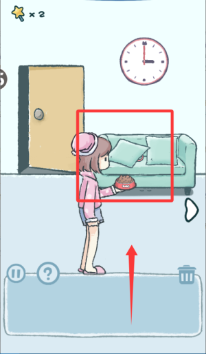 天天躲猫猫第1章第3关攻略: 拿到沙发上的垫子与逗猫棒。 垫子放在柜子前面的地上,然后将逗猫棒拖动使用在猫咪上,猫咪下来后点击即可过关