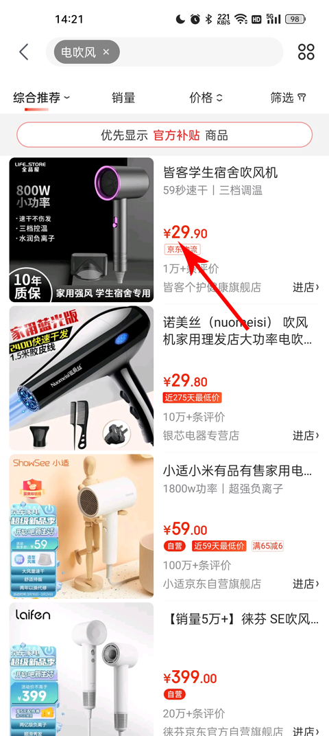 2、输入感兴趣的商品名称,搜索并浏览商品;