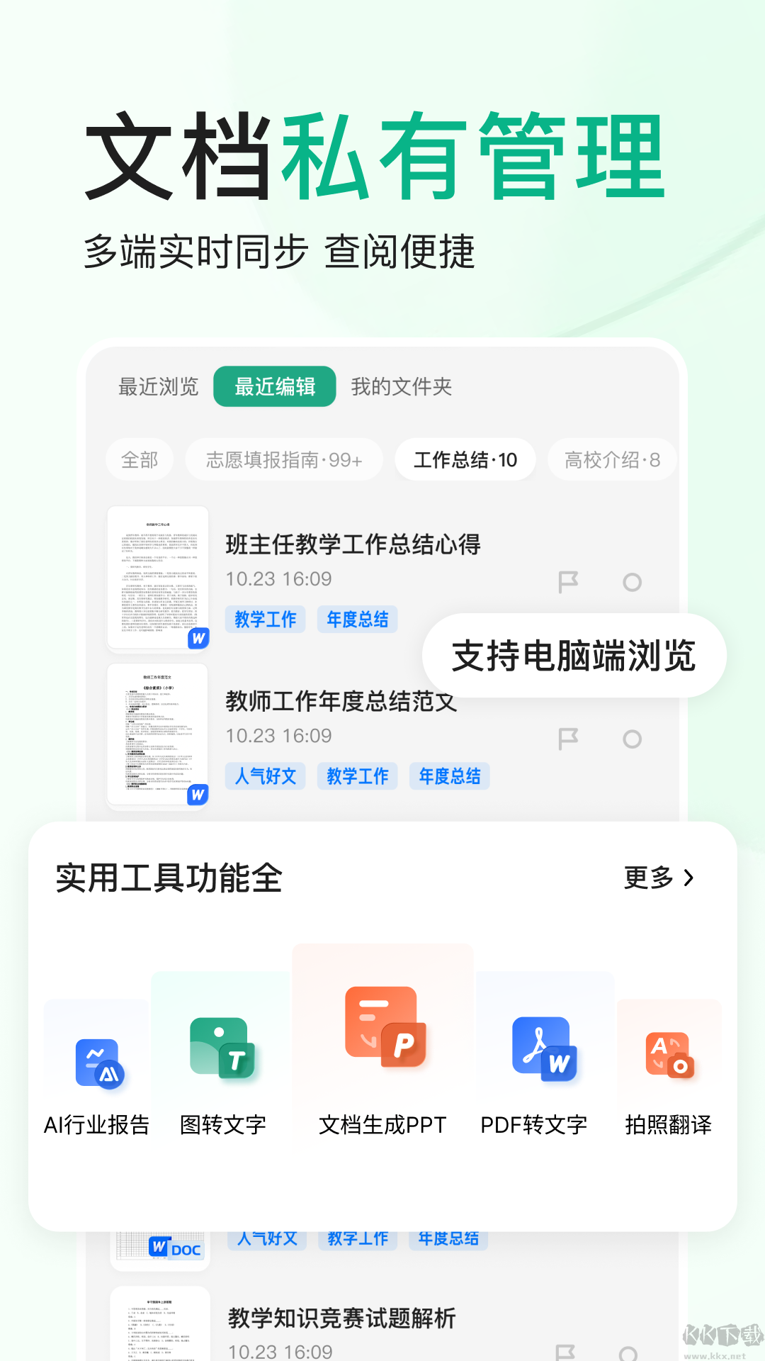 1.最近浏览/收藏/下载内容随时查看,多端数据实时同步;
