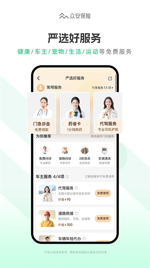5、涵盖健康险、意外险、重疾险、医疗险、车险等,在线投保,快速理赔