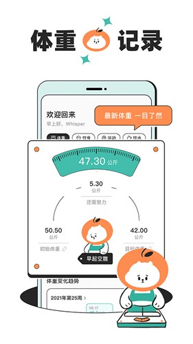 1、在本站下载饭橘减肥app,可以开始记录你的减肥历程