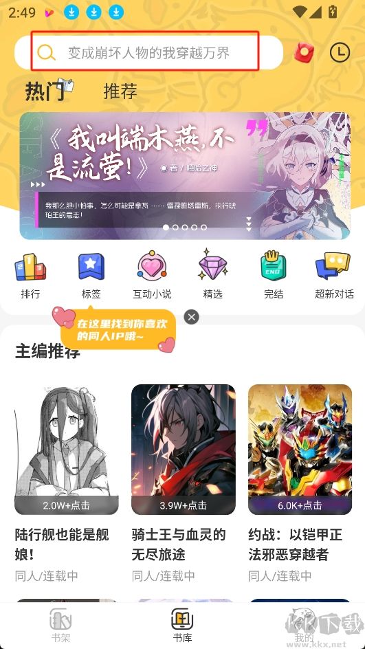 1.进入app主页,点击最上方的搜索框搜索自己想要阅读的小说;