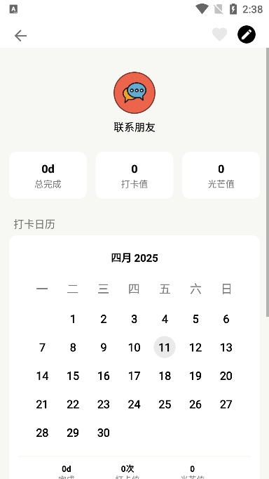 3、日历视图:通过日历视图回顾打卡历史,用户可以清晰地看到自己的习惯养成轨迹,概览一日打卡时间线,便于总结和分析自己的习惯养成情况。