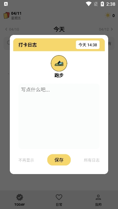 4、日记功能:不仅是习惯追踪工具,也能作为一天的小日记使用,用户可以记录自己每天完成的常见事情,以及当天的心情、感悟等,让记录更加全面。
