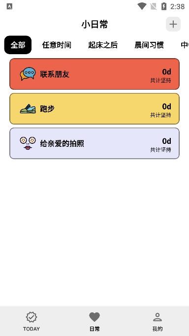 1、大家若是想删除小日常app里的习惯,就需要先选择页面下方的“全部”选项,进入全部页面才能够设置删除习惯哦!