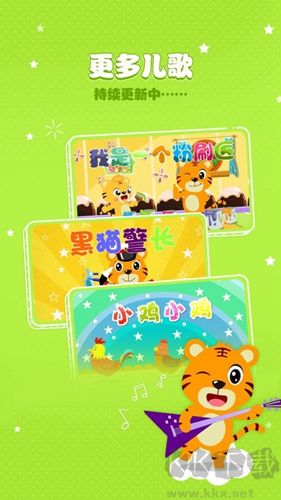 2、【各种类型】拥有律动儿歌、亲子儿歌、中文儿歌、英文儿歌,经典动画片的主题音乐等。