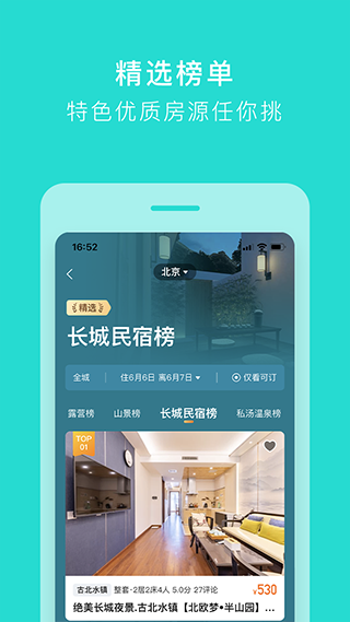 1、对于不同的民宿房源还会按照住客的评分等级分类,让旅游可以入住到更优质的民宿里。