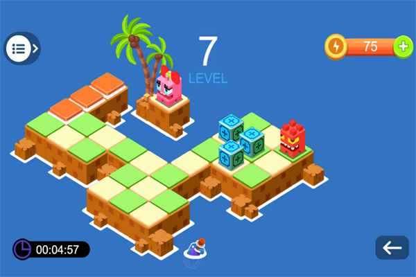 2.发挥聪明才智,找到最正确的方法,用最少的步数移动各种箱子,尝试直接通关的乐趣。